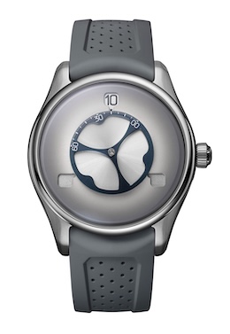 H.モーザーは、ジャンピングアワーとミニッツディスクを組み合わせた独自の表示方式を特徴とする「パイオニア・フライングアワーズ」に、衛星機構から着想を得た独創的なディスク式表示を採用する新たな2モデルを追加した。5Nレッドゴールド+ブラックDLC仕上げのチタンインサートを用いた100本の限定モデルと、ステンレススティール製の非限定モデルである。時刻表示は、3枚のサテライト・ディスクが自転しながら中央のスケルトンミニッツディスクの周囲を公転する構造で、毎時ジャンピングアワー機構により瞬時に数字が切り替わる。これにより、従来の滑らかな表示から一転し、直感的かつダイナミックな視認性を実現している。