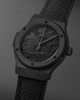 さらに、今回のポップアップブティックの開催に合わせて、ウブロとヨウジヤマモトとのコラボレーションモデル「クラッシック・フュージョン ヨウジヤマモト オールブラック カモ」(163万9000円/世界限定300本)を発表。ウブロとヨウジヤマモト、両ブランドを象徴する黒の芸術を再定義したオールブラックコンセプトで、クラッシック・フュージョンコレクションでは初のコラボレーションモデルとなる。同モデルは、異素材を巧みに組み合わせたデザインとマットな質感が特長で、特にブラックオンブラックのカモフラージュダイアルは、手首の動きに合わせて繊細に変化し、多彩な表情を楽しむことができる。
