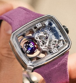 革新的な時刻表示機構を駆使した、特徴的な多層構造ダイヤルのタイムピースは、既存の「時間の読み方」の常識を覆してきた。アヴァンギャルド外観デザインとはうらはらに、内部にはスイスの伝統に裏打ちされた緻密な機械式ムーブメントが収められている。エキセントリックなデザインと高度な機械的構造との融合は、ブランドの真骨頂である。