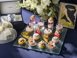 『ロンジン』のタイムレスなエレガンスと、コンラッド東京が手がける春スイーツのクリエーションが織りなす優雅なアフタヌーンティー。特別な