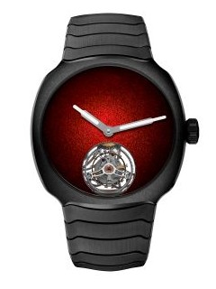 限られた生産数で希少なタイムピースを世に送り出す、H.モーザーのアイコンコレクション”ストリームライナー”に、初のセラミックモデルが誕生した。 異なる仕上げを施した深みのあるアンスラサイトグレーのセラミック製のクッションケースと一体型ブレスレット、インデックスもロゴも存在しないグラン・フーエナメルのレッドフュメダイヤルが、シンプルでありながら鮮烈なコントラストを生み出している。 ダブルヘアスプリングを組み込んだ6時位置のフライングトゥールビヨン搭載の自動巻きキャリバー HMC805は、約3日間のパワーリザーブを備える。
