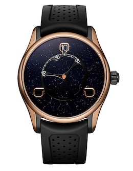 搭載される自動巻きキャリバーHMC 240は、両方向巻上げの自動巻き機構を搭載し、自社製ヒゲゼンマイと脱進機を備える。文字盤はインデックスやロゴを排し、アベンチュリンまたはホワイトフュメの仕上げにより、宇宙的な深みと洗練された印象を与える。分表示は120度の弧に沿って配置され、ディスク縁の細さと目盛りの短縮により、視覚的な軽快さが際立つ。本モデルは、パイオニアコレクション10周年を飾るにふさわしい技術的挑戦である。