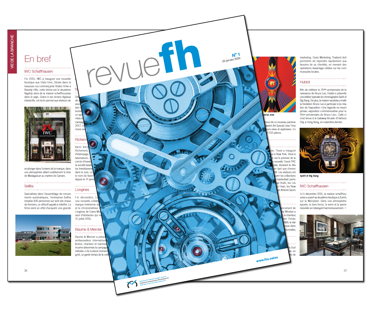 Revue FH は、当協会が隔週発行する時計業界誌です。FHの仕事や活動、ブランドや新製品に関する最新ニュース、さらに時計業界に関連する幅広いテーマを取り上げた多くの記事を掲載。すべての記事はフランス語と英語で発行されます。